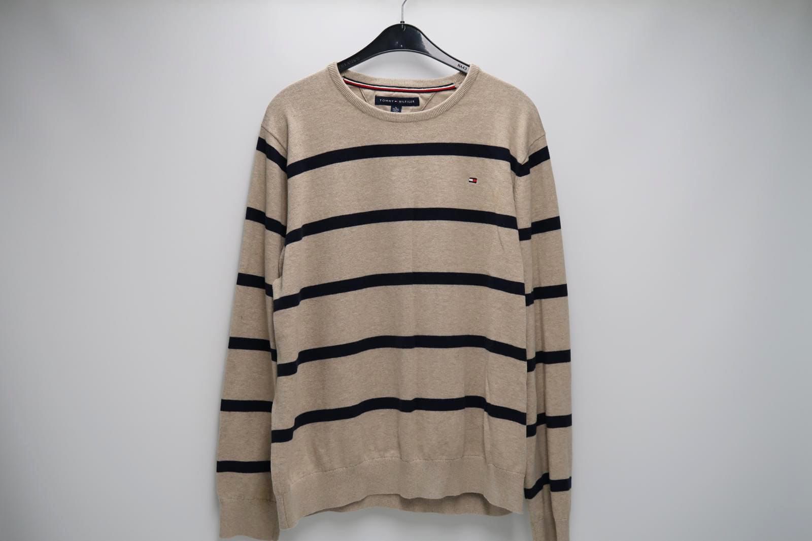 Beige Tommy Hilfiger Trui met Donkerblauwe Strepen – XL